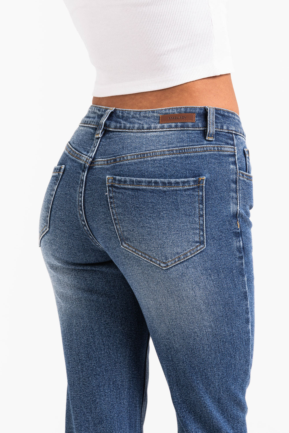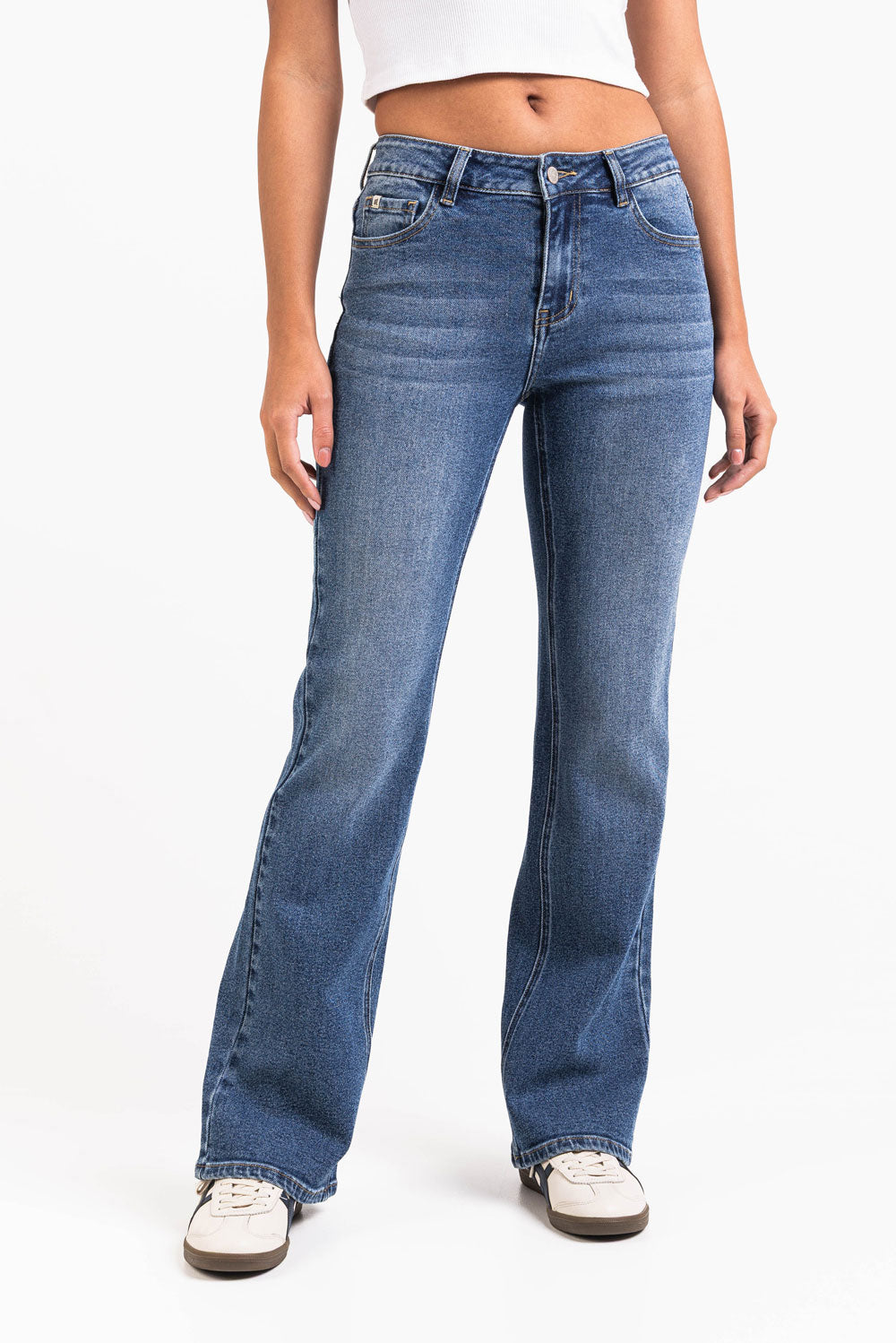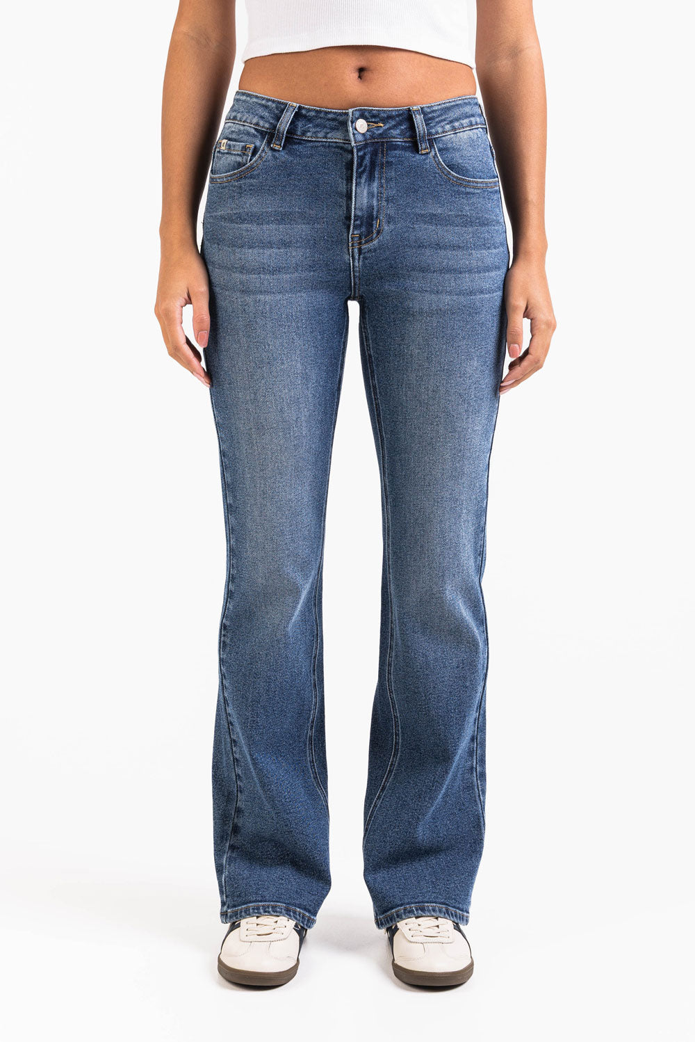 Deze mid waist jeans hebben een bootcut-pasvorm met achter- en zijzakken voor dagelijkse functionaliteit. Ontworpen met riemlussen en een ritssluiting bieden ze een tijdloze en nette look die perfect is voor casual outfits.
