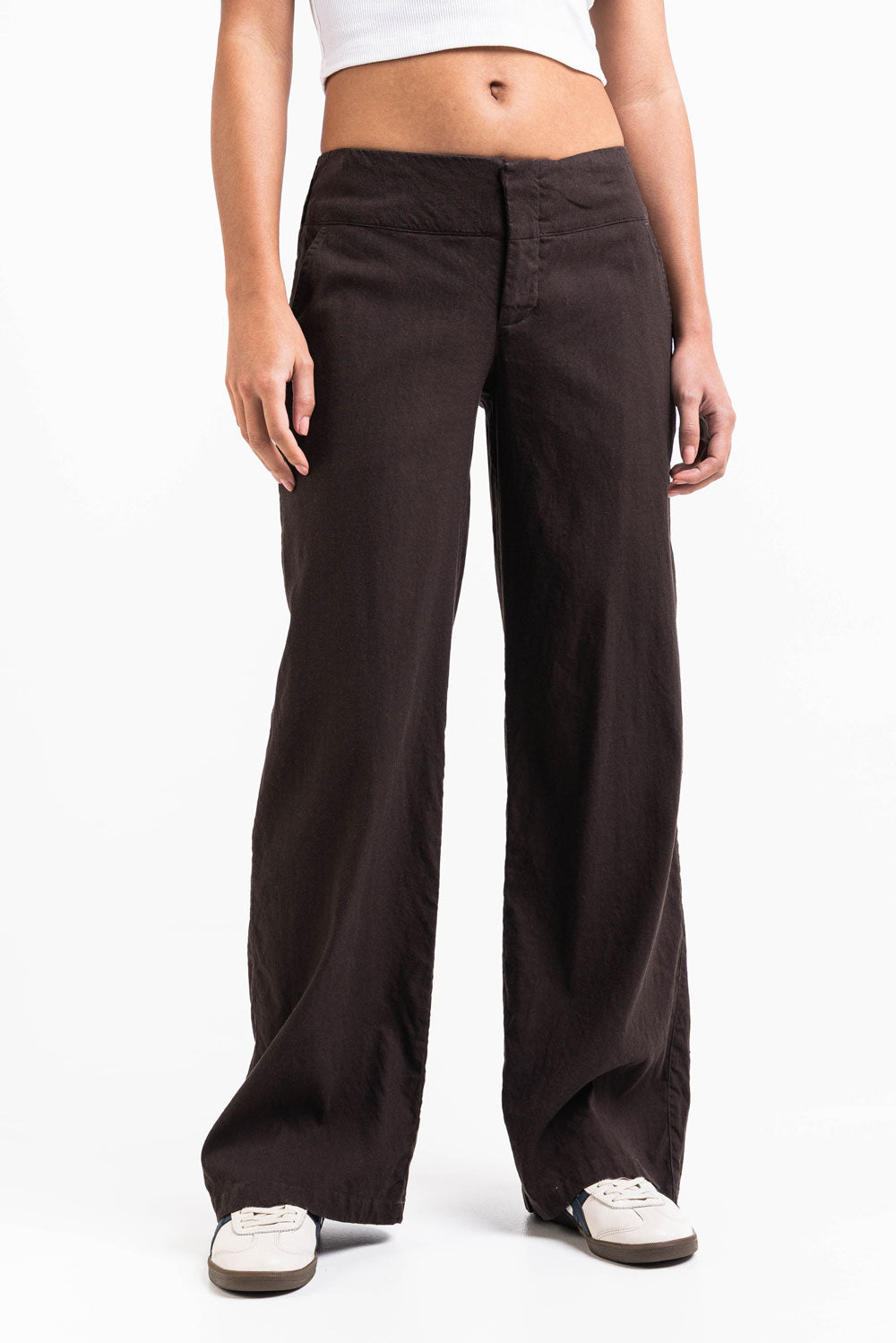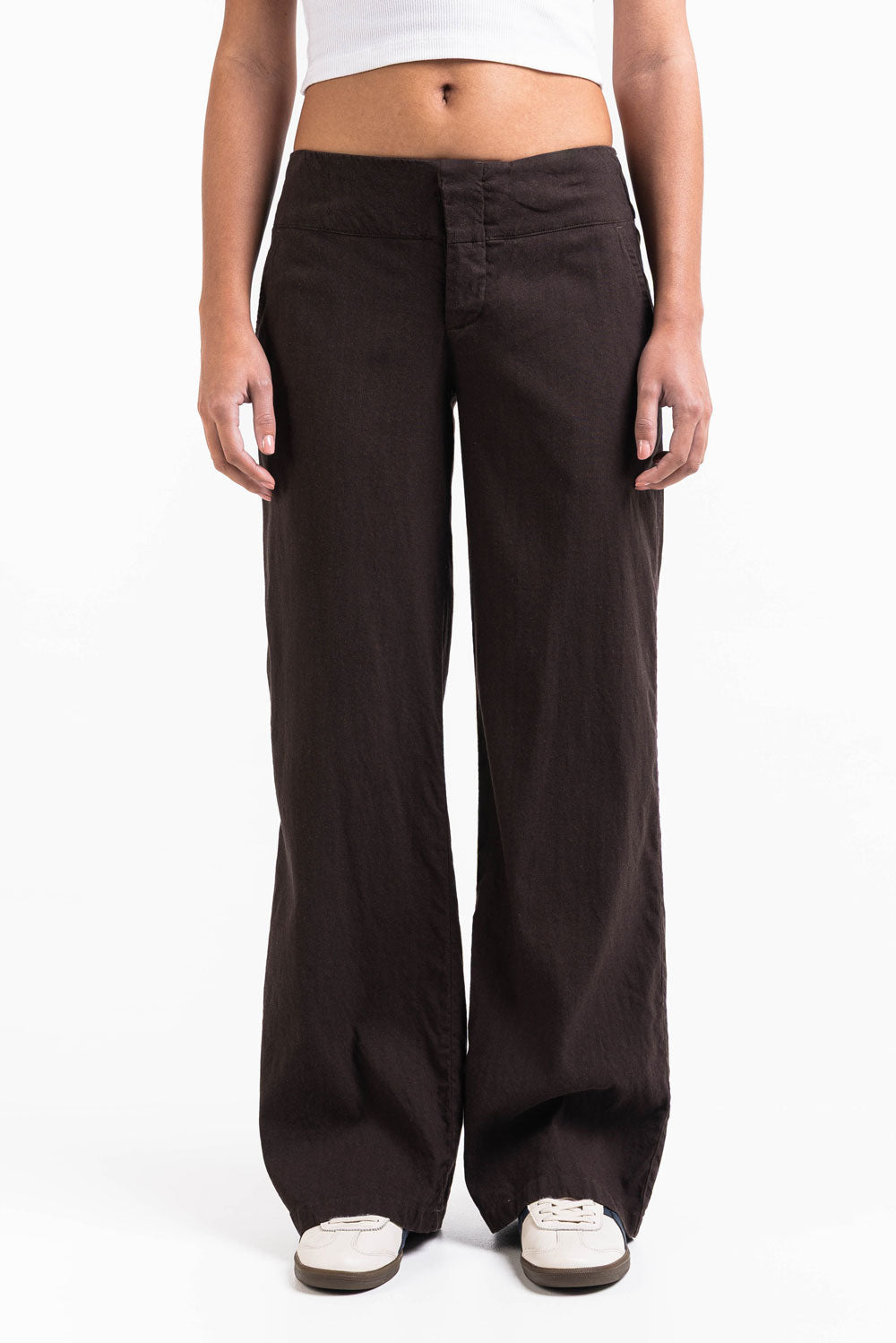 Mabel 03Low LinStretch Straight Linnen broek - Brown