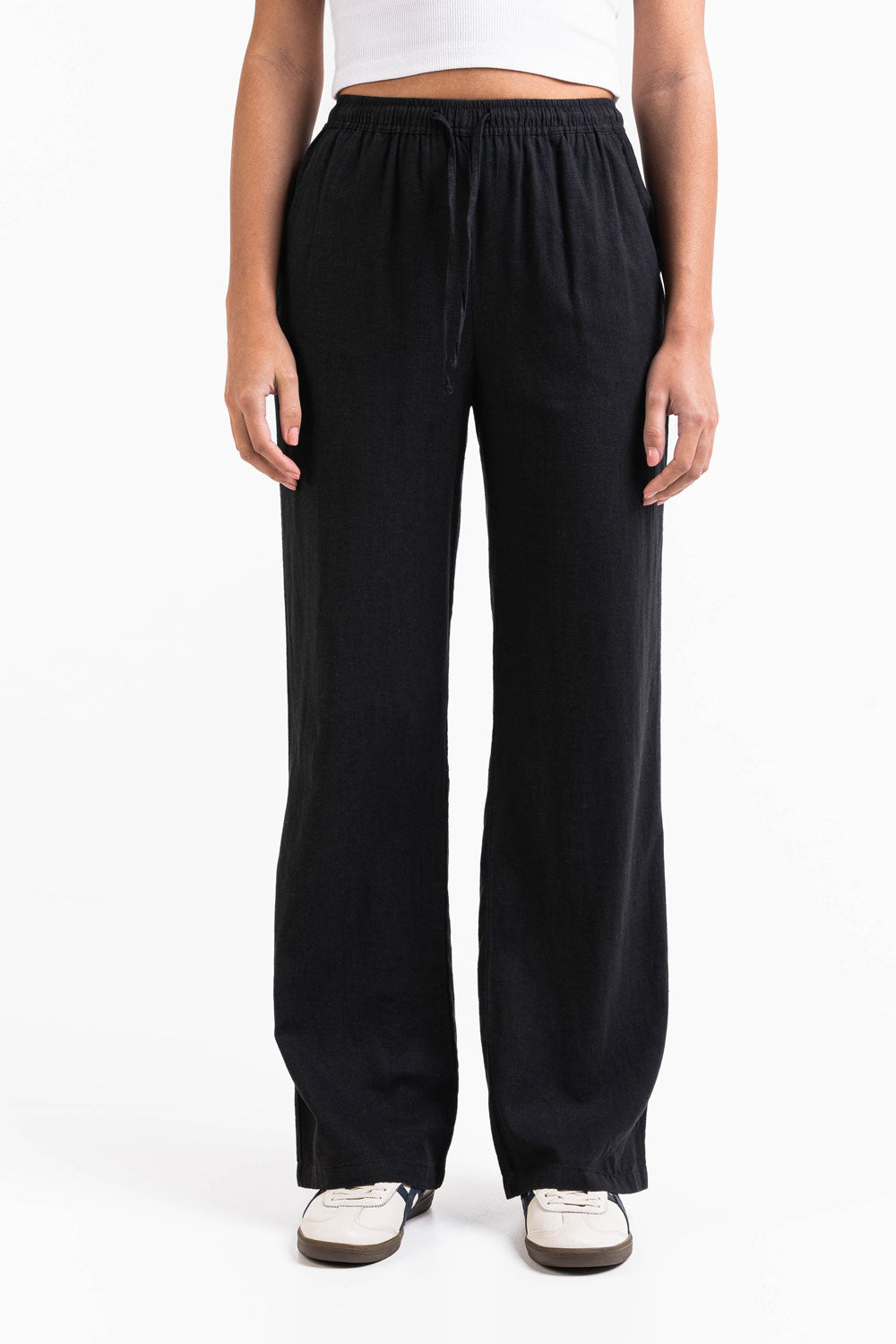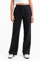 Mila 01High Straight Linnen broek - Black