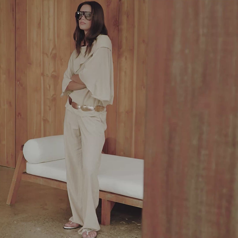 Mabel 02Low Straight Linnen broek - Linen Beige